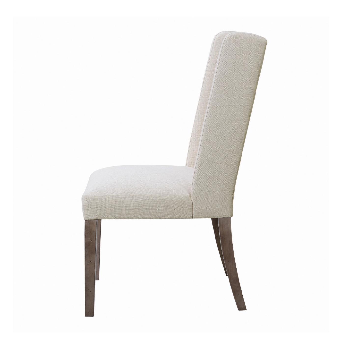 This stately dining chair has a luxurious look and feel that's fit for royalty. A soft, plush, comfortable seat allows for restful relaxation. The seat is embellished with eye-catching rivets, giving it a classic look. A sleek silhouette and gently curved legs add glamorous opulence. Elegant and refined, this chair adds graceful style to a formal dining room.