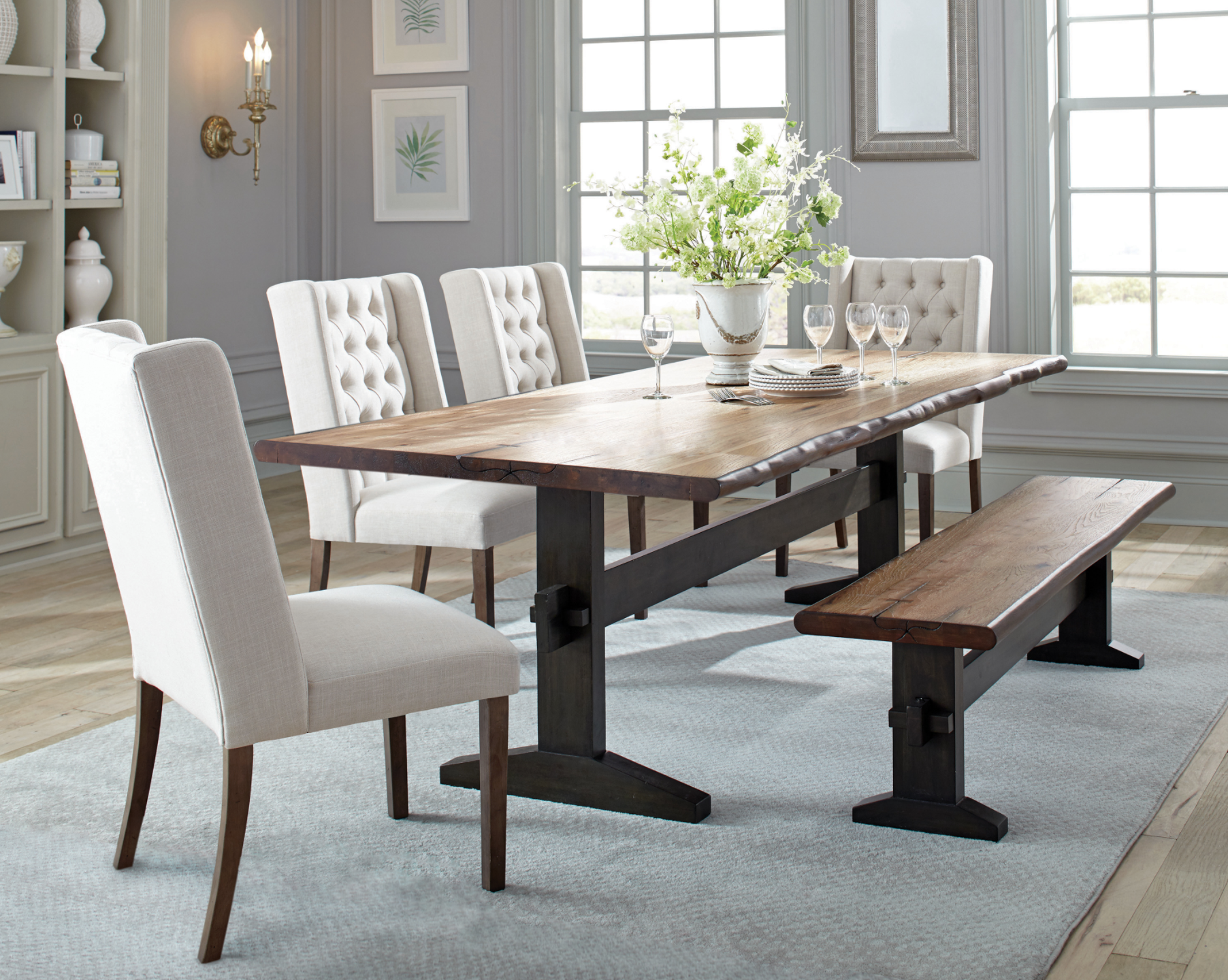 - A transitional hand-crafted dining collection features the Live Edge design that transforms your dining space