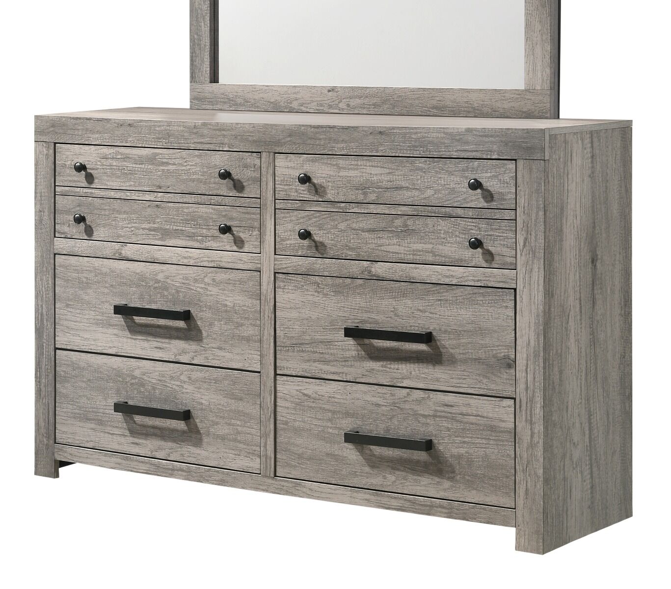 Get organized with this stylish Tundra dresser. This dresser is perfect for any bedroom. It comes in a sleek grayish brown finish, providing a touch of style to any decor. The six spacious drawers provide plenty of storage room, making it easy to keep your clothes and accessories neatly organized. With its modern design and ample storage space, this dresser is sure to be a valuable addition to your home.