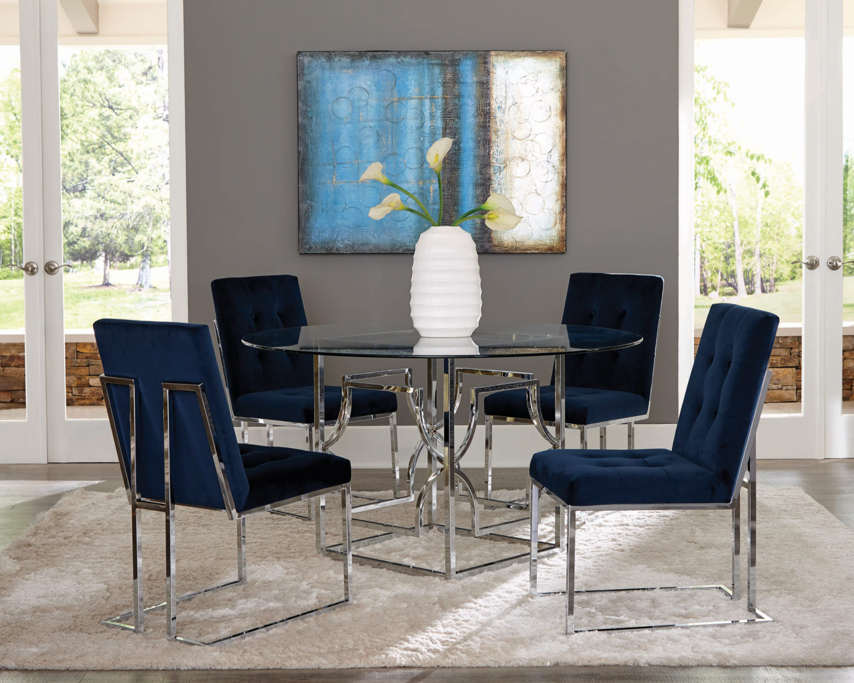 Upholstered Dining Chairs Ink Blue And Chrome