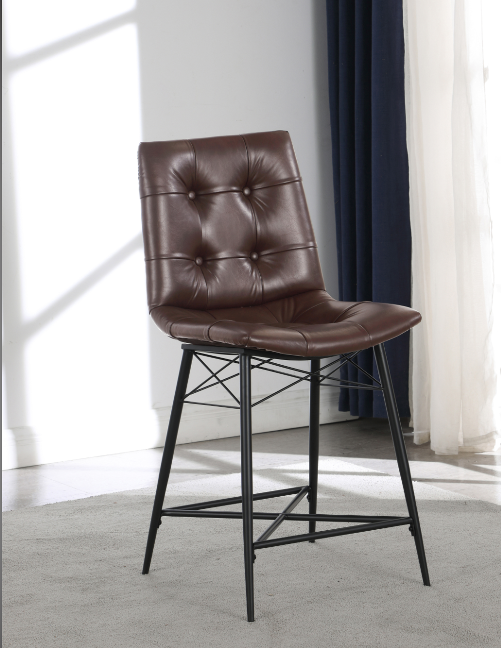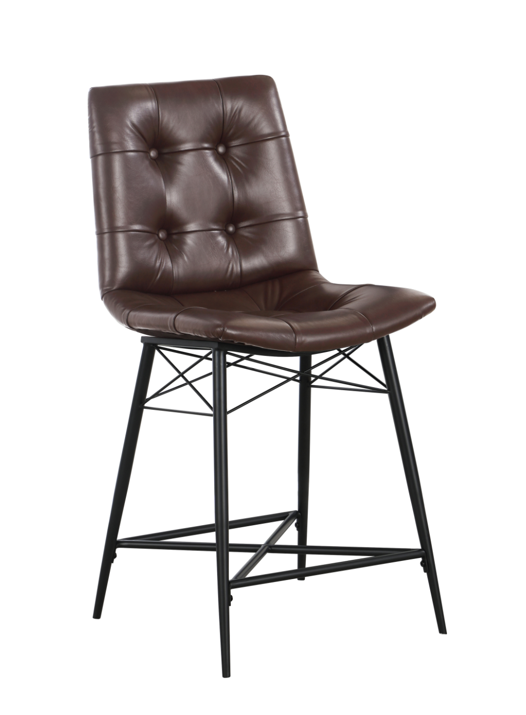 Cool and cozy, this counter height stool is the ultimate dining room upgrade. The padded seat is wrapped in smooth leatherette for an inviting look and feel. Button tufting adds a subtle, decorative touch. A sleek, metal base gives it a modern look while providing plenty of support. Crafted for comfort and lasting durability, this contemporary stool is a smart and stylish choice for the modern home.