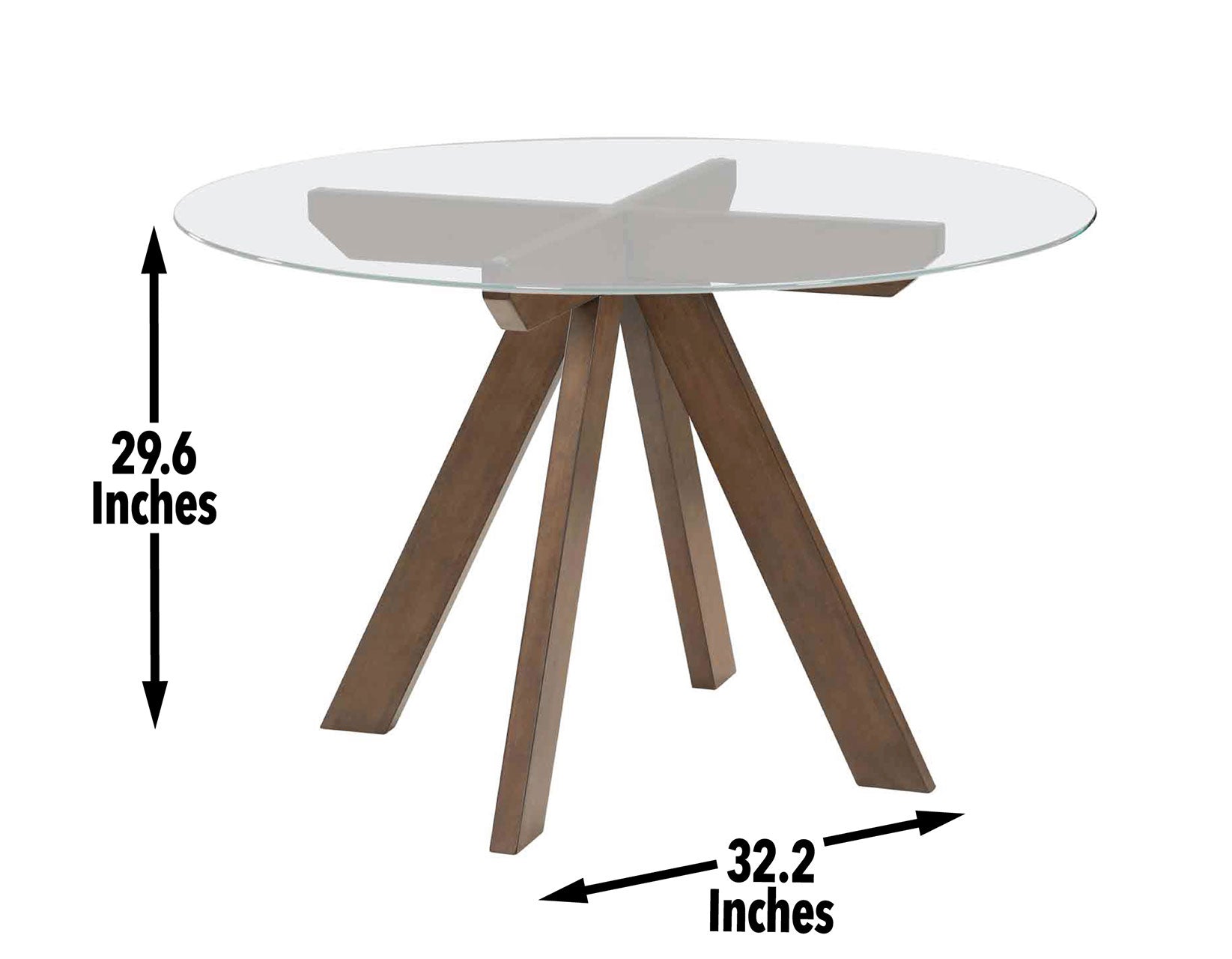 Open and airy, the Wade dining set is transitional style in a compact dining set. A glass top table frames up a beautiful timber beam base while the 48-inch diameter top easily accommodates four comfortably. But the real star of the collection may be the white nubby upholstered chairs that contrast perfectly with the mocha finished legs and table base.