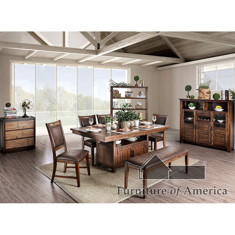 For the discerning handy person who likes to keep everything closeby in case you need it. This dining set keeps everyone at the table and comfortably eating dinner. Padded leatherette seating keeps people cozy, and an ample storage base means it is easy to invite others to grab a plate and enjoy a meal.