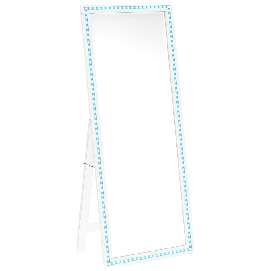 Windrose Full Length Floor Standing Tempered Mirror with LED Lighting White
