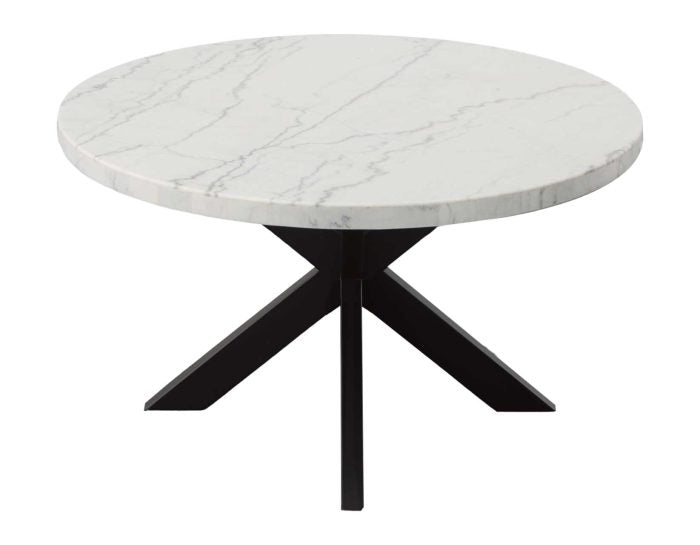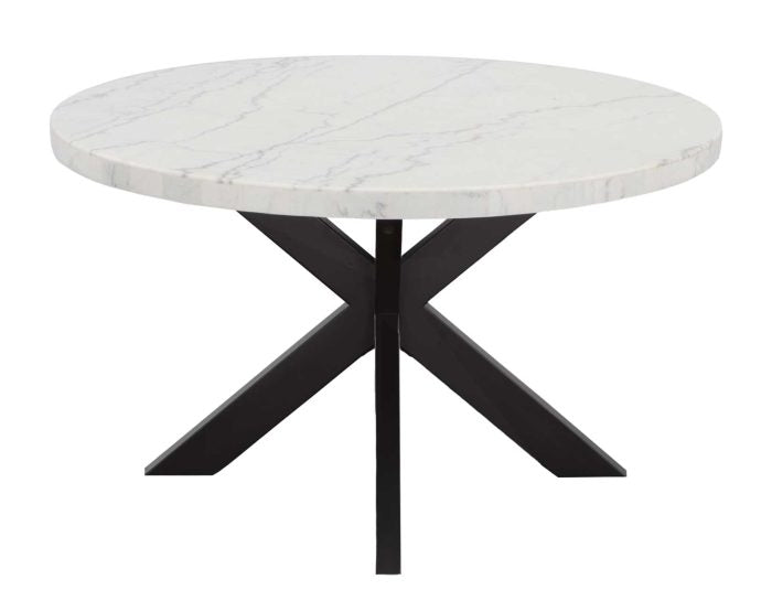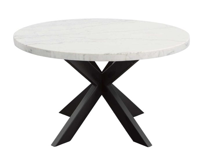 Round and flowing, the Xena 52″ Round Marble Table is an elegant setting for an evening dinner or morning coffee. A beautiful round white marble top rests gracefully atop an ebony cross-timber plank table base in a mix of formal and informal designs that relaxes the table to a more casual presentation. The 52″ round table easily seats six for a charming and delightful setting for any occasion.