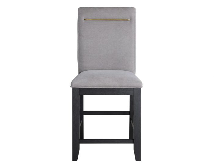 Clean modern living just got a lot easier with the contemporary styling and SilverShield® performance fabric chairs from the Yves collection. A rubbed charcoal wood finish combines with gold-colored accents on the Counter Chair and Server to give a look both sleek and warm. The 96-inch table easily seats eight and features a weighty top your guests or family will appreciate.